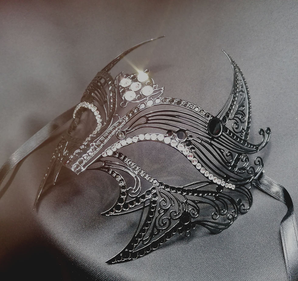 Black Smoking Mask with Blue/Purple Crystals MEDIUM SIZE